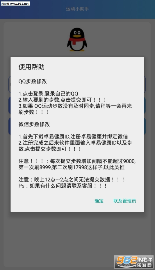 《运动小助手app》是一款为朋友们打造的运动步数修改软件,使用本款软件可以修改和qq上的运动步数,当然软件也不是万能的,不能随便的刷,每次刷的间隔不能超过9000,想要高步数就需要多刷几次了。