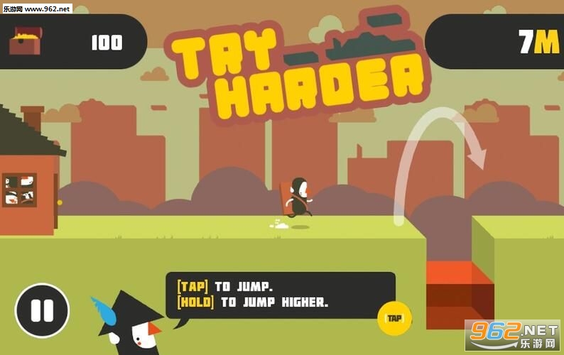 面对大的沟壑怎么办,二段跳不是那么好跳过的。点击屏幕长按达到一个高度之后,然后我们再次快速的点击跳跃,这样就可以激活二段跳了,稍微手慢就跳不过去了。