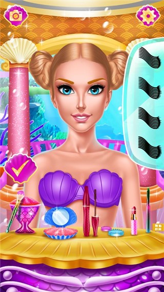 3、为她涂上海底最闪亮的化妆品,再挑选合适的发型和漂亮的舞会裙;