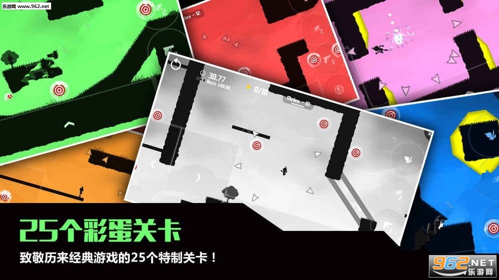 简单的操作配合极简的动画,有着140+个关卡可以挑战,玩家需要在限定时间内通关,还有力场,奔跑,击破,夺取4个模式可以选择,25个彩蛋关卡,喜欢竞速游戏的赶快下载吧。