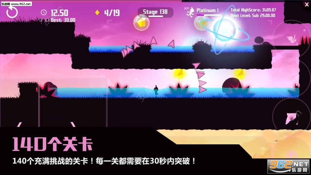 极限突破手游是一款移植游戏,平台跳跃类。这款极限突破手游中,一共将拥有超过140个关卡可供玩家来挑战,除此之外,还有二十多个奖励关卡,任何喜欢平台跳跃游戏的玩家,都将在这款游戏中找到自虐的快感。游戏中可能并没有想像中有很多机关,但挑战很大。