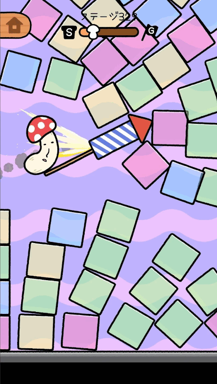 1、滑动屏幕让蘑菇飞起实现蘑菇跳跃。