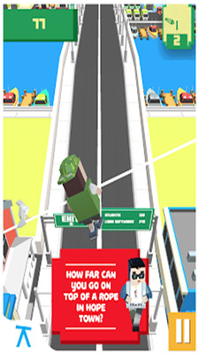 《行走不要跌倒游戏手机版》是一款在抖音上非常受欢迎的休闲手游,游戏的画风非常有特色,玩法也很简单,轻松就能上手。玩家在游戏中需要操纵好你选择的人物在绳子钢丝上行走,不同的角色的技能设定都各不相同,玩起来还是比较考验玩家的平衡能力和反应速度的。喜欢的话可千万不要错过哦!