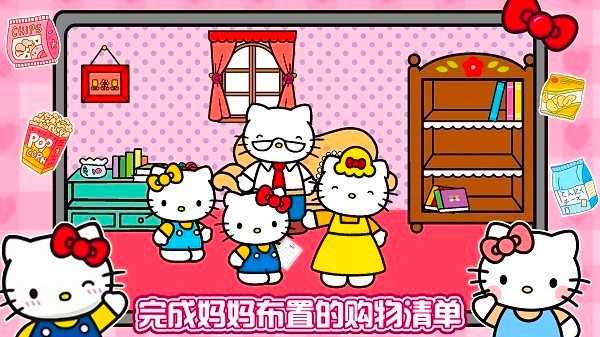 1、与凯蒂猫家人互动:在游戏中,玩家可以与凯蒂猫的家人进行互动,了解他们的需求,帮助他们完成购物任务。
