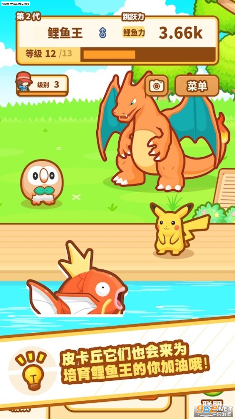 人气爆红的宝可梦们会来帮你一起培育鲤鱼王哦!不知道会遇到哪隻宝可梦呢?