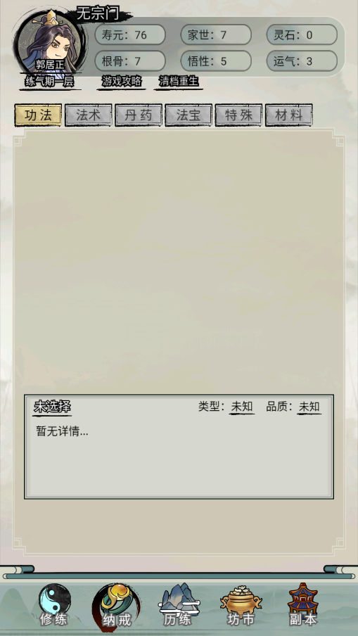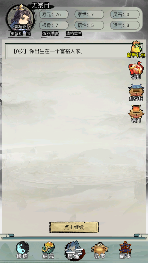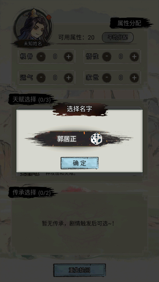 《重生修仙模拟器》是一款独特的重生类文字修仙游戏。玩家在游戏中可以分配属性、选择天赋,体验从凡人到修仙者的成长历程。通过文字交互,你将沉浸在修仙的奇幻世界中,感受每一次重生带来的不同选择和成长。游戏注重策略与选择,让你在修仙的道路上不断挑战自我,追求更高的境界。