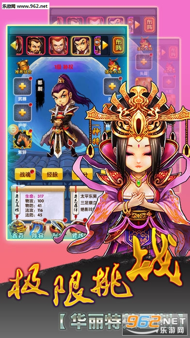 【海量武将,自由搭配】数百名三国武将悉数登场,没有强制的阵营划分,你可以自由打造属于你的三国阵容;