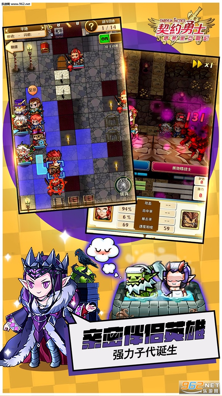 除了传统的战棋玩法外,《契约勇士》中还有许多独特的玩法。例如在游戏中,当勇士们旗下的佣兵团的英雄亲密度达到一定程度之后,勇士们可以选择让英雄们结婚并培养出更加强大的子代英雄,全新的子代英雄更会有意想不到的技能效果哦!
