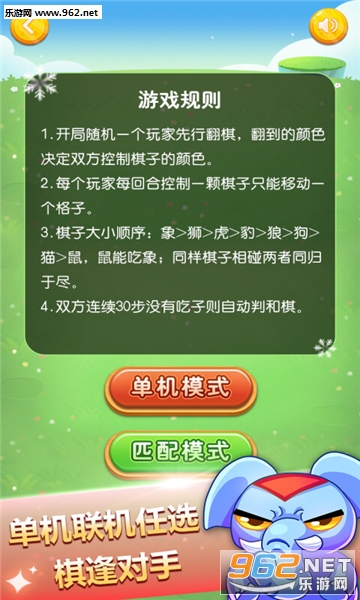《斗兽棋手机版》这是一款非常有趣的益智棋类对战手游。游戏画风卡通,玩法简单易懂。玩家需要熟练掌握斗兽棋的规则,操作自己的棋子吃掉对方的大象,获得比赛的胜利。游戏支持单机和双人模式,感兴趣的玩家可以下载体验!