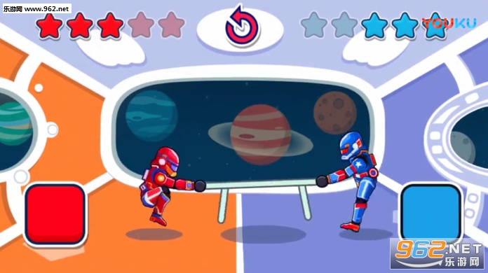两人联机对战,进行拔河比赛,但是拔的不是绳子而是桌子,就两个按钮,趣味场景,适合打发时间的哦。
