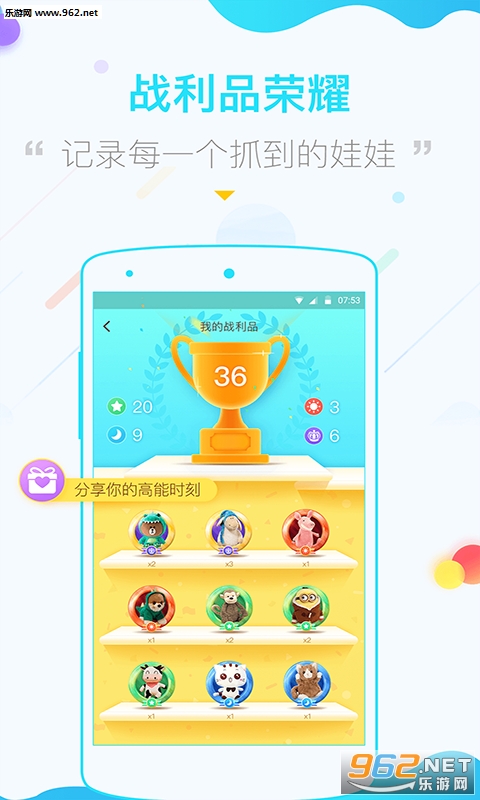 展示所有抓中的娃娃,给你留住每个抓取瞬间。别忘了拿你的陈列柜向朋友炫耀哦!
