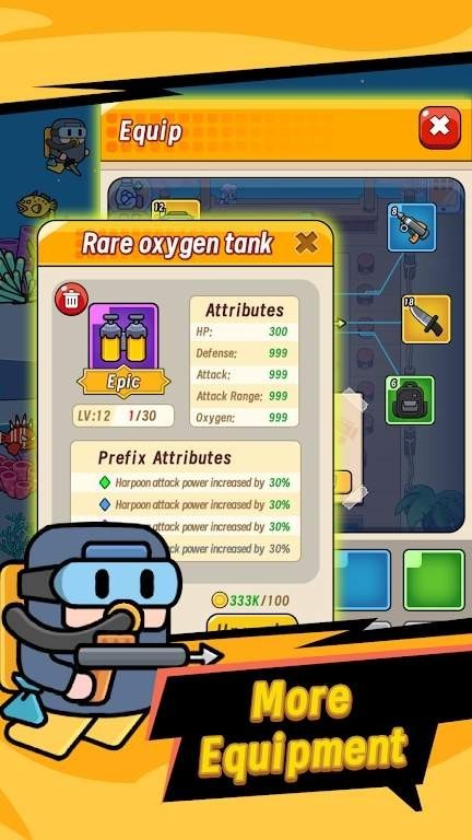 2、提供种类繁多的潜水装备,玩家可以自由选择并合理搭配。