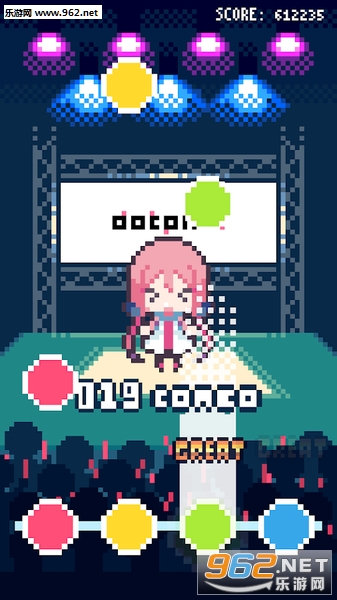 根据掉落的对应颜色的球按下对应的鼓点,让dotpict娘跳起舞来。