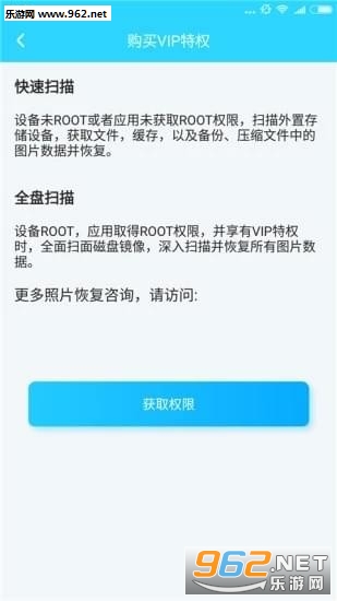1、在手机未获取相应权限的前提下,软件的几大恢复功能是无法使用的