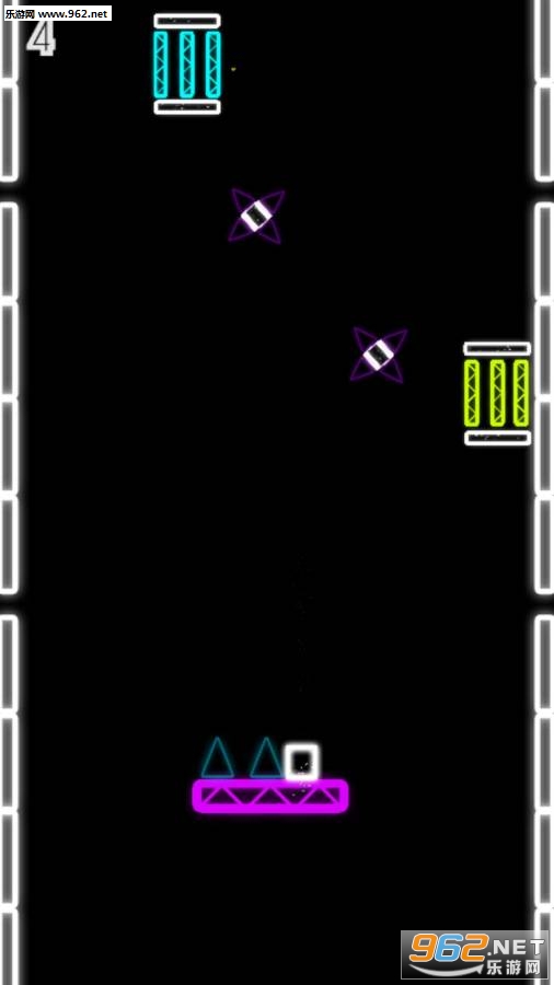 点击跳跃和弹跳墙壁,然后点击降落。 降落在霓虹灯平台上,记得避开障碍。 收集星星以解锁新角色,注意有色平台,当你跳到霓虹灯高度的顶部时,它们会向不同方向反弹并产生许多危险。