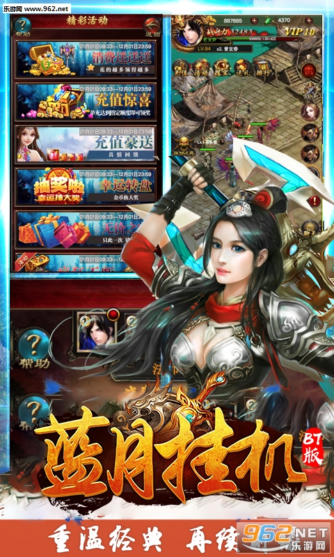 蓝月挂机BT变态版是一款以经典传奇玩法为基础打造的全新挂机放置类RPG手游,架空魔幻世界,正统对战体验。自由交易绿色游戏环境,多模式pk特色玩法,魔幻世界的多人组队冒险模式开启!