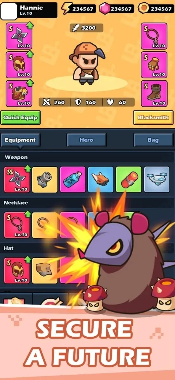 经典肉鸽割草玩法,通过击败敌人获取升级资源。