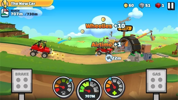 在游戏中,操控车辆前进并收集沿途的积木与金币。途中还会出现各种道具,利用这些道具帮助玩家顺利前进。