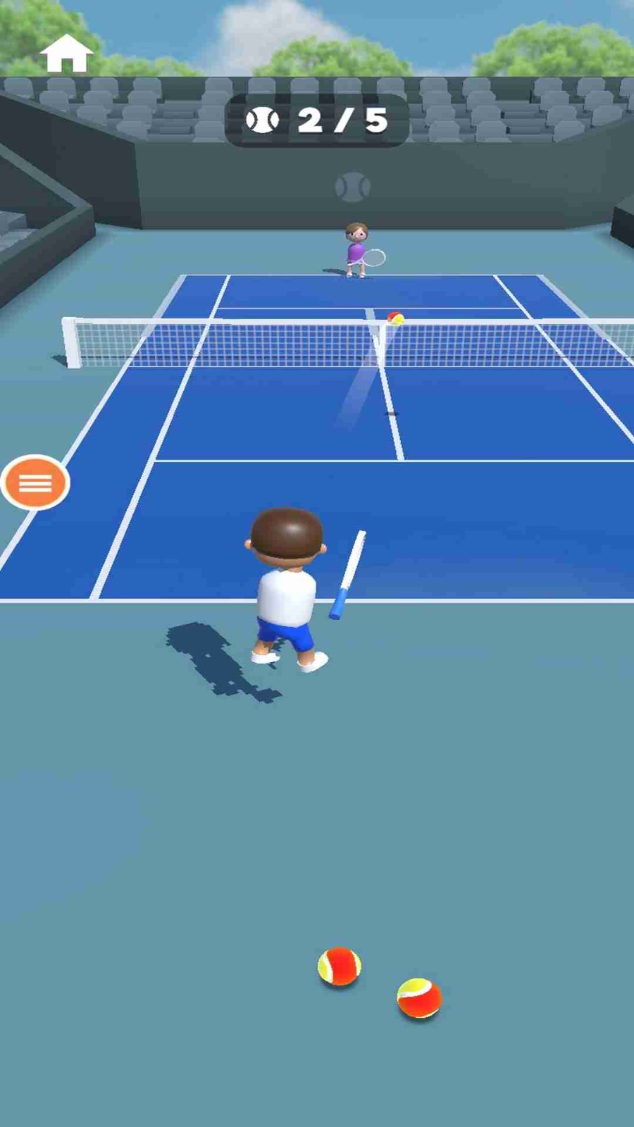3、一键控制的网球游戏,简单的操作,滑动手指击球攻击对方