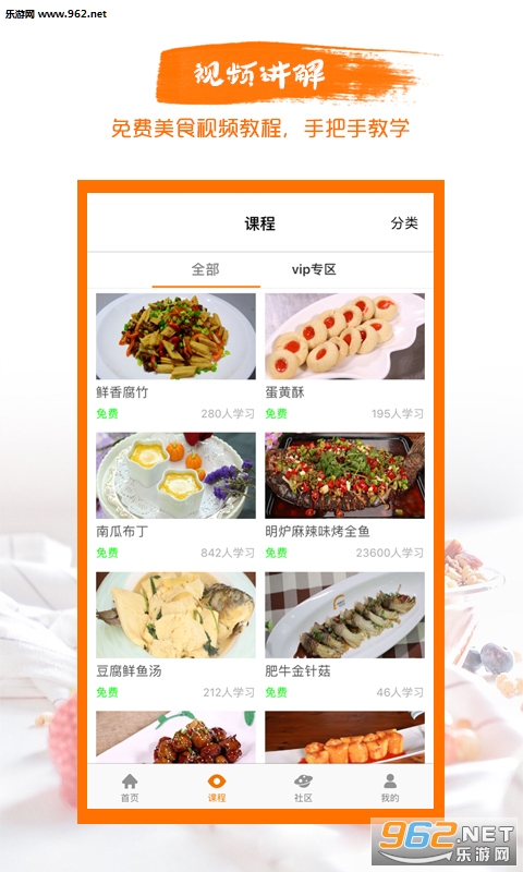 【视频:分类菜谱,海量视频】 依托新东方烹饪教育、欧米奇西点西餐教育的强大资源,内容囊括中餐、西餐、西点烘焙、各色美食、小吃创业等多样课程。