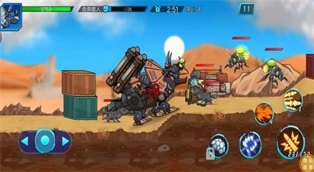 恐龙战斗之旅游戏中你将跟随你的恐龙机甲一起在末日战争下生存下去!游戏中玩家们需要控制好方向键盘移动角色、完成各种射击动作,在途中会遇到各种变异生物,玩家们需要非常小心,巧妙的借助战场地势完成对战!游戏整体对战场景是非常精彩刺激的,如果你也喜欢机甲类游戏就千万不要错过啦!