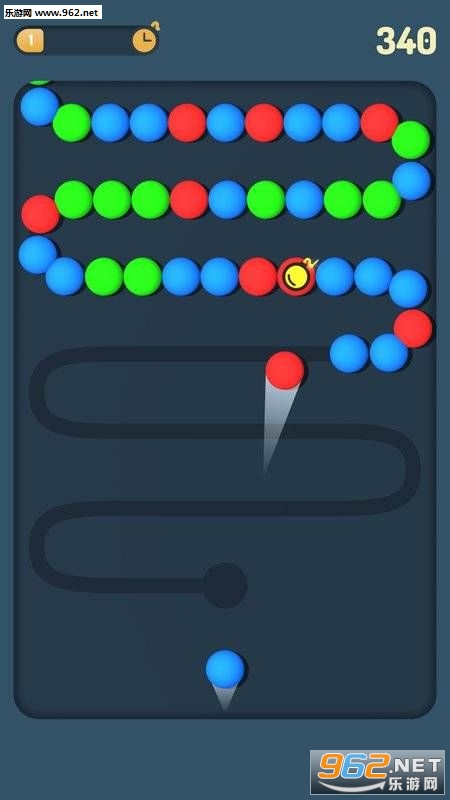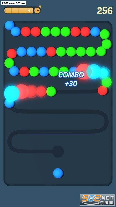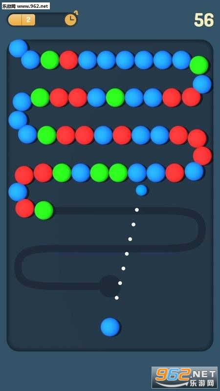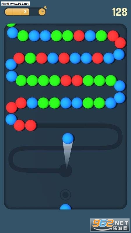 3、当球球们没有消除掉而到达洞口时你将会被判游戏失败,尽快找到同色消除它!