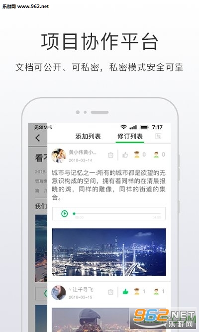 开问网APP主要功能包括:项目功能:如创建项目、邀请管理者、申请参与者、发表添加与修订、在创建项目和发表添加时导入word文档、对添加与修订进行投票、对项目信息及规则进行变更及相应投票、生成新版本等;
