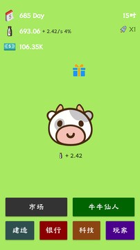 2、基础资源收集:玩家通过点击屏幕上的奶牛获取牛奶,操作简单直观,适合各年龄段玩家。