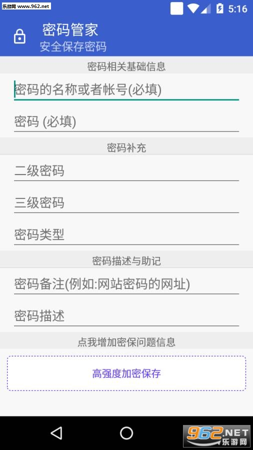主密码SHA 散列保存,信息用主密码对称加密码保存,安全可靠。加密码后的所有信息都保存在本地,应用不需要网络权限