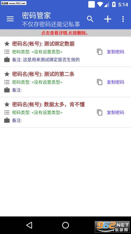 《密码管家安卓版》是一款为朋友们打造的密码管理软件,在生活中我们会有着各种不同的账号和密码,有时候密码设置的不一样,我们就会经常将密码记混或者是直接忘记了,可以会用本款软件来记录自己的各种密码。