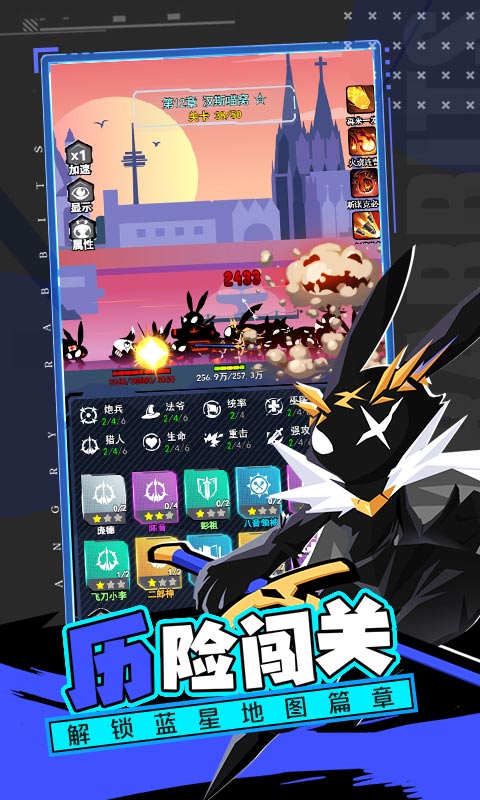 《愤怒的兔子》具有独特剪影风格的休闲挂机手游,具有原创题材,在游戏中,你将率领兔子军团,在世界各地的名山大川展开冒险之旅。游戏带有一定的roguelike机制,每一关都有随机伙伴出现加入队伍,需要谨慎选择来组合羁绊,兼备相当的策略深度。同时简单的操作让玩家更易于上手。
