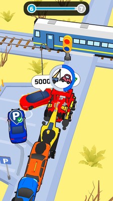 2、驾驶炫酷卡车精准操作,一次性串联拖走最多汽车,赚取金币解锁升级。