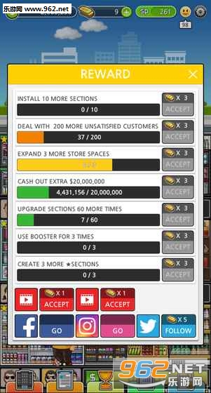 安装更多部分并扩展商店以获得更多空间并获得更多收入。获得奖励并加快业务运作。