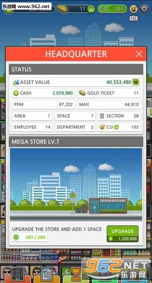 超级商店经理,有数百名的员工当中适当的时候雇佣需要的员工。延长雇佣员工,掌管人事工作达成优化的组织,安装各种各样的部门的各部分。一边安装各部分一边升级争取最大的收益,控制紧急状况接待访问商店的顾客。老是保持顾客满足指数最高争取最大的收益。
