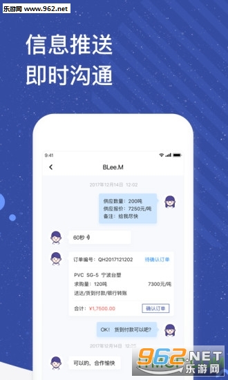 【消息】社交买卖,通过语音,文字等方式即时沟通行情,询盘、报价、议价或生成订单、在线合同,一站式完成多个交易流程;