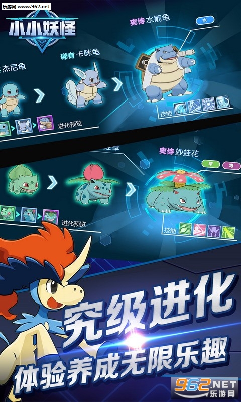 百款萌宠精灵等你捕捉收集、精心养成,最强精灵无限进化!属性相克实力PK,顶级特效完美展现精灵技能释放!
