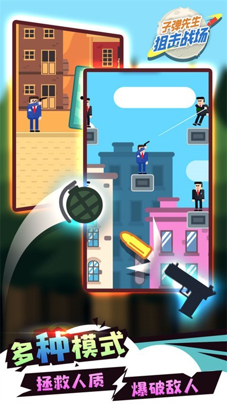 1.创新玩法:结合了子弹先生的冒险元素和狙击射击玩法,带来了别具一格的体验,不仅可以体验到精彩的关卡冒险,还能尽情发挥狙击技巧。