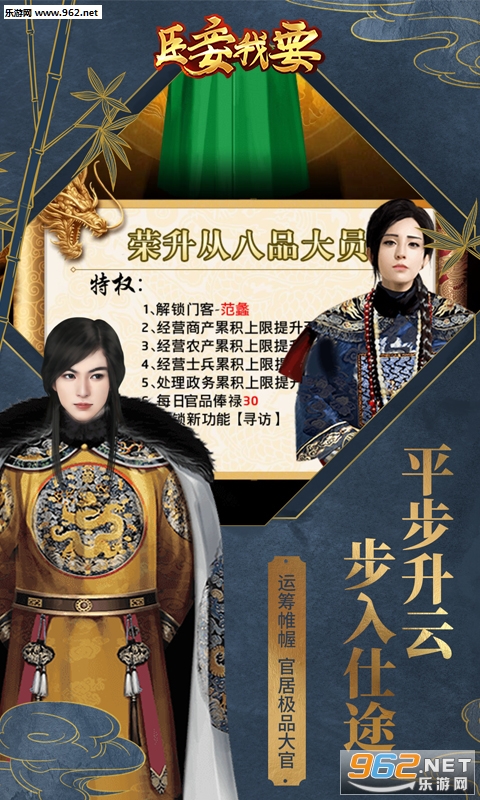 游戏玩法剧情精彩丰富,画面场景精美,玩家既可以在游戏中体验权势集一身的乐趣,也能体验到古代妻妾,儿女成群,美女佳人环绕的快感,快来下载吧!