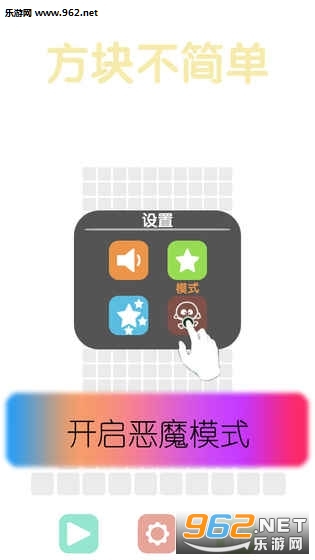 方块不简单是一款以经典的俄罗斯方块为原型打造的全新休闲类手游,方块不简单手游的操作也比较简单,只需要控制方块变形和移动即可,同时还有独特的恶魔模式,感兴趣的小伙伴快来下载吧!
