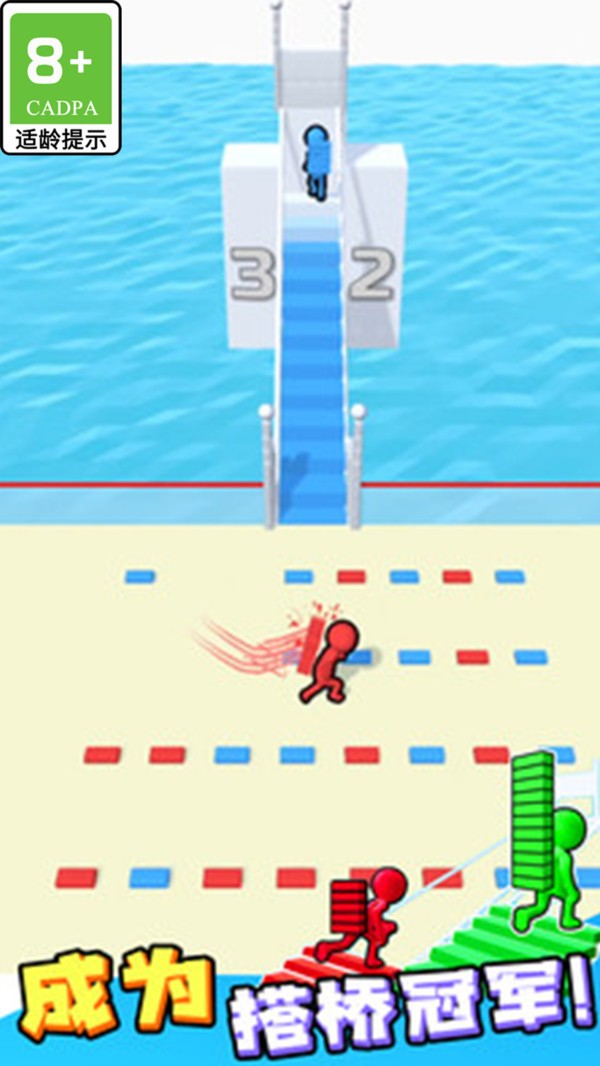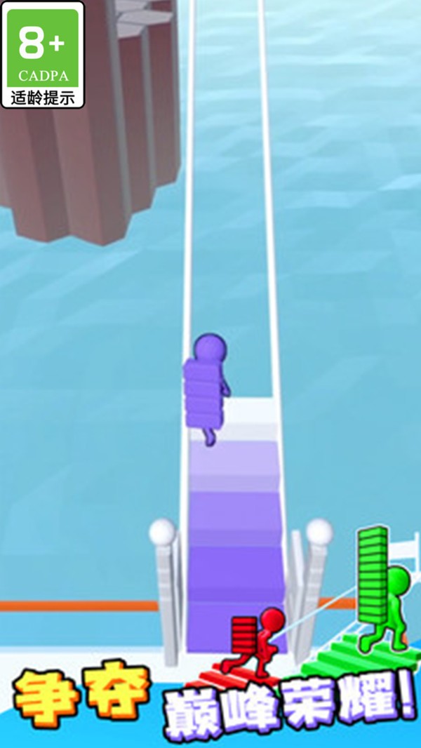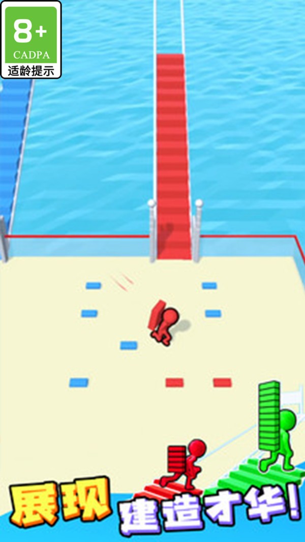3、砖块叠得越高,跑酷速度就越慢;作为搬砖爱好者,必须快速学会技能才能生存到最后。