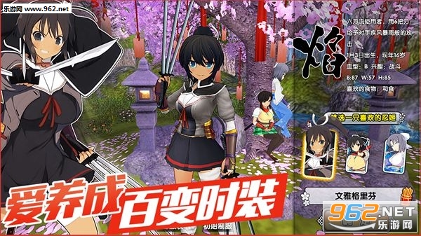 游戏内所有忍姬角色均使用真人比例设计,逼真还原少女模样,可御可萌给你不一样的视觉体验!