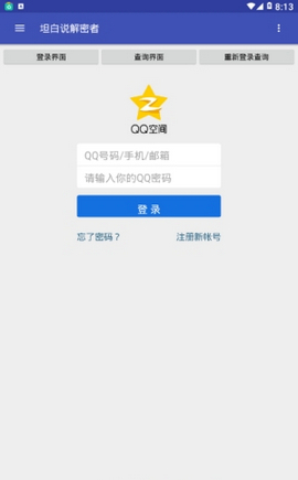 《坦白说解密者》是一款最近非常火爆的QQ坦白说查看软件,你可以用它来查看谁给你发的悄悄话,快速查询对方身份及坦白说内容,操作简单还安全,有需要的用户快来下载吧。