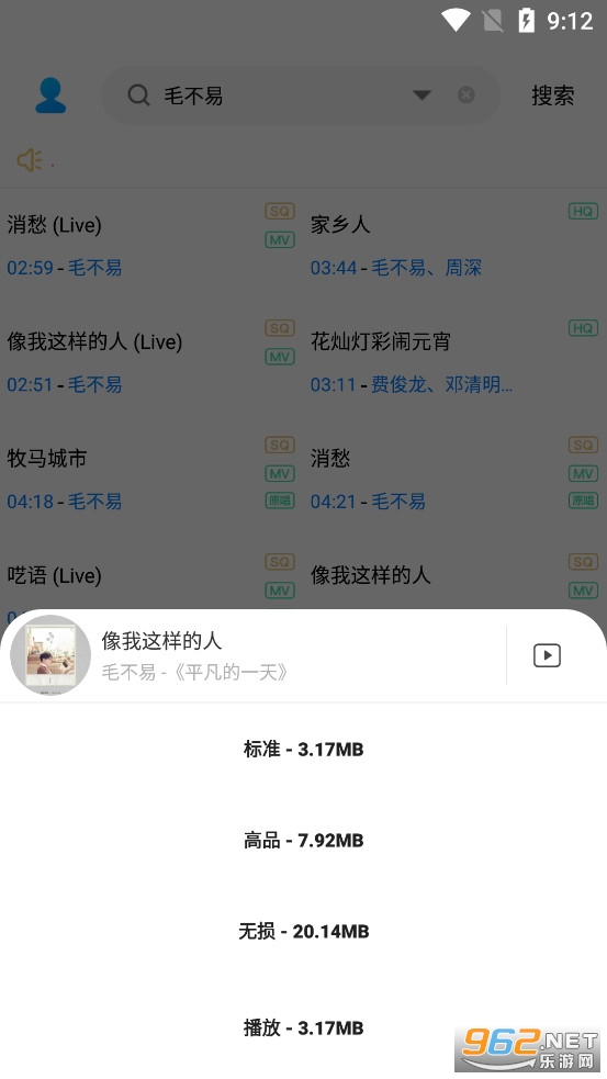 3、支持无损、标准以及高品和MV等,下载速度快;