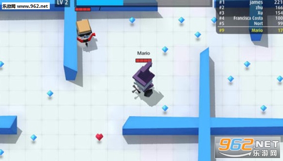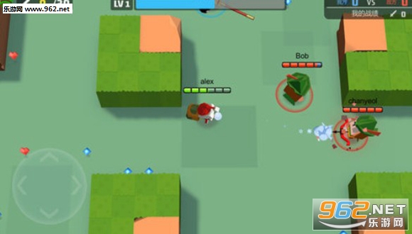 1、通过虚拟摇杆控制走位,利用手中的弓箭击败对手;