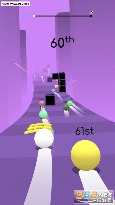 3、让小球不断冲破障碍,路上的道具会使你跑得更快;