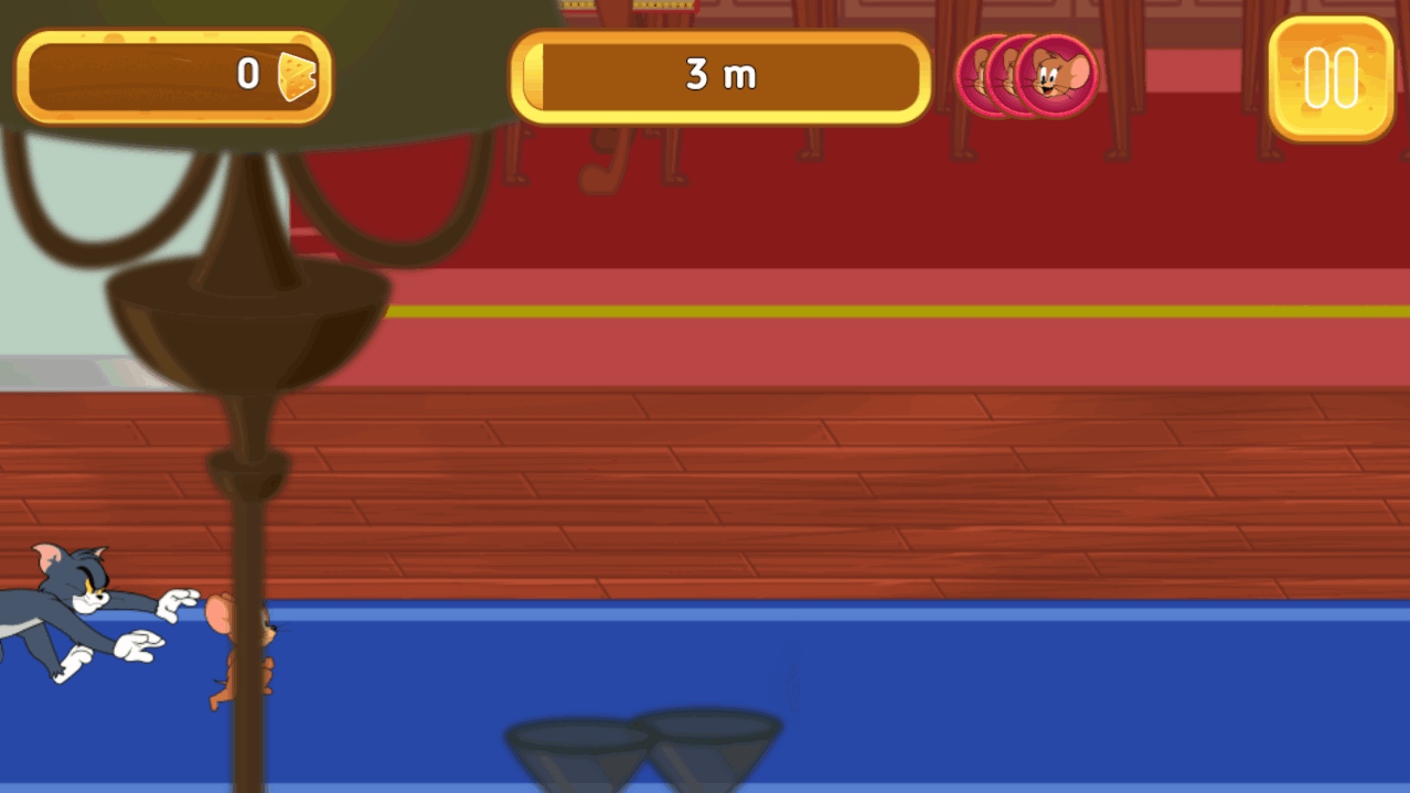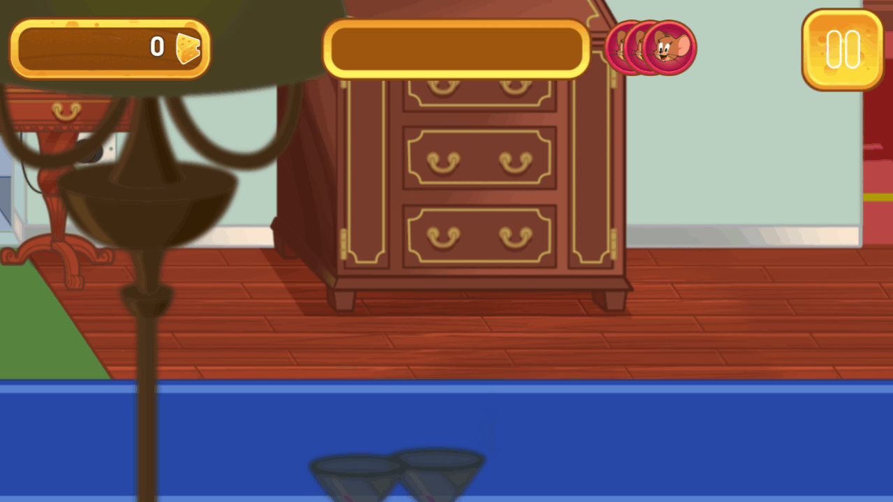 1、玩家需要控制小老鼠不断的躲避猫猫的追击拿到更多的奶酪,玩家需要帮助老鼠杰瑞摆脱汤姆的追击。