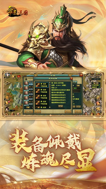 玩家皆有机会虏获区服独一无二的名将,携手关羽、赵云、张飞……打造无坚不摧的帝王之师。