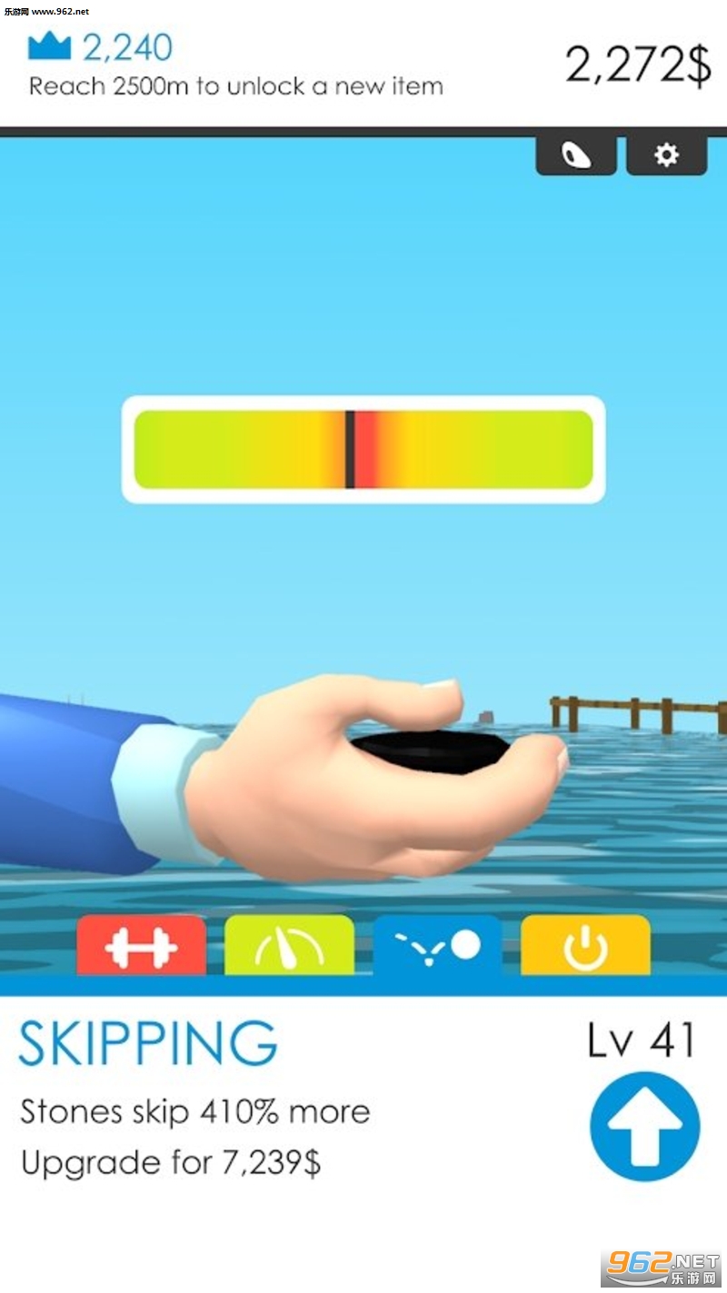 1、扔出石头,让它们漂得越远越好!你可以获得更多的分数;