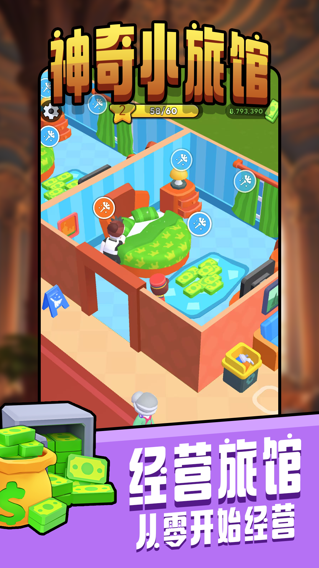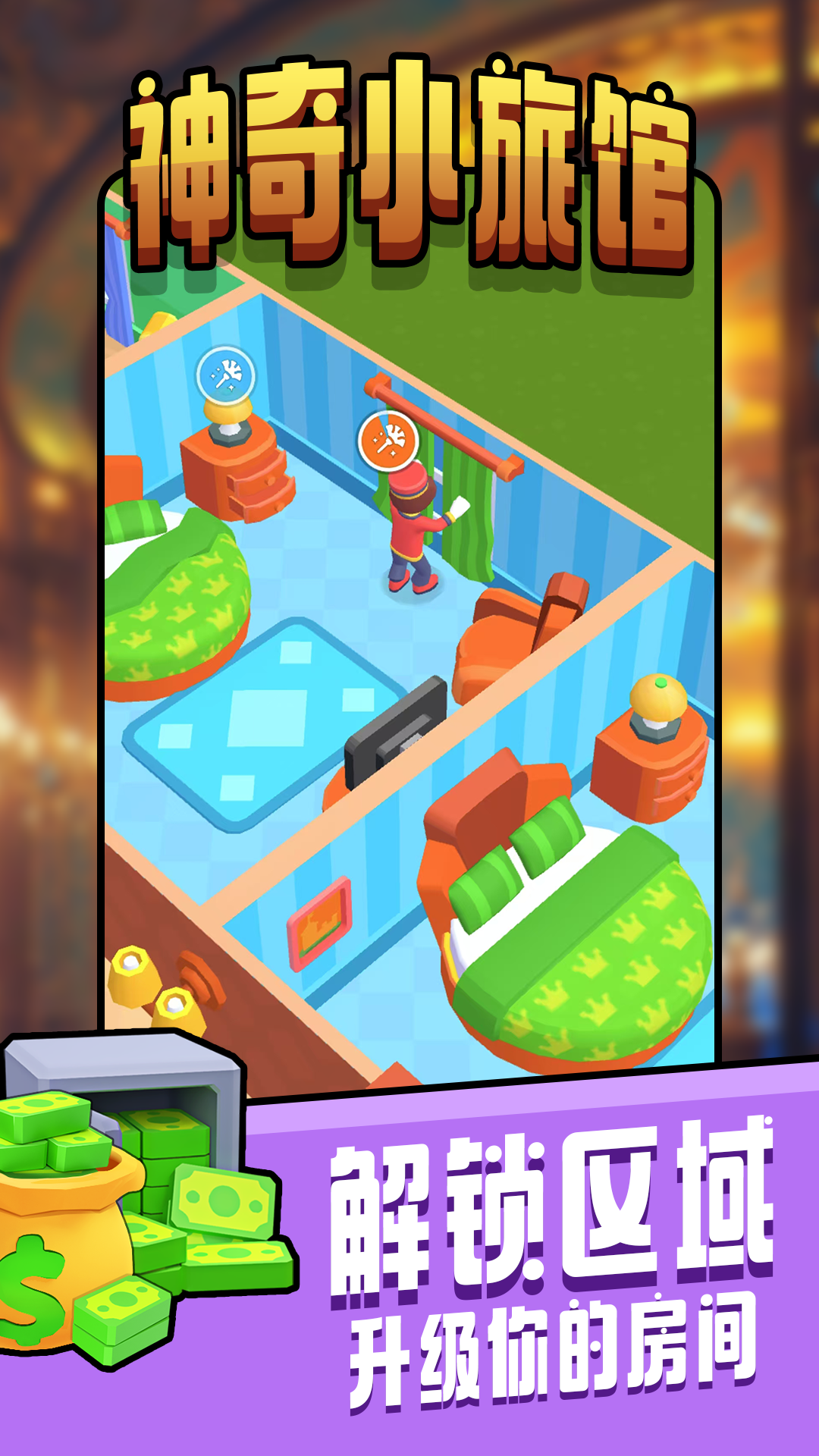 1、从破旧的客栈起步,逐步升级客房,解锁高级套房,打造自己的梦幻旅店。