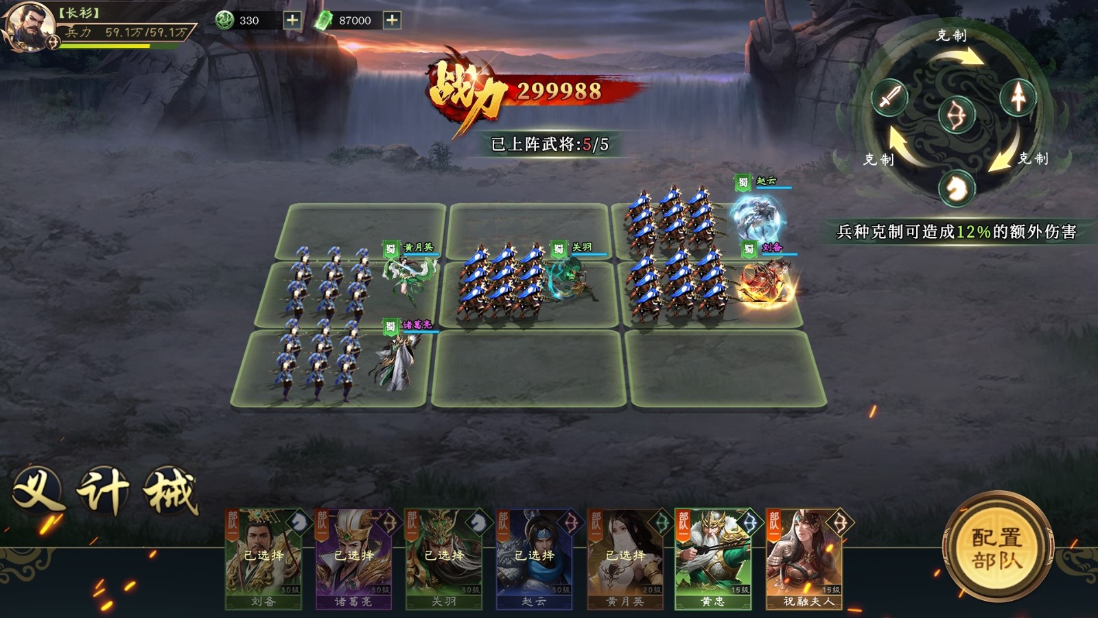 2、每位武将都能够自由成长,还有专属神兵等着你来收集,还有羁绊技能阵容搭配。
